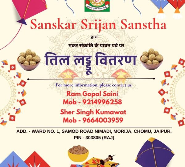 The Til Laddu Distribution program is organized to promote social harmony, cultural values, and community bonding. On the auspicious occasion of Makar Sankranti, til laddus are distributed among children, the elderly, and needy sections of society. This initiative spreads messages of love, sharing, and equality while preserving traditional Indian customs. Til laddus are nutritious and provide warmth and energy during the winter season. Through this program, we aim to bring smiles to faces, strengthen social connections, and encourage a spirit o